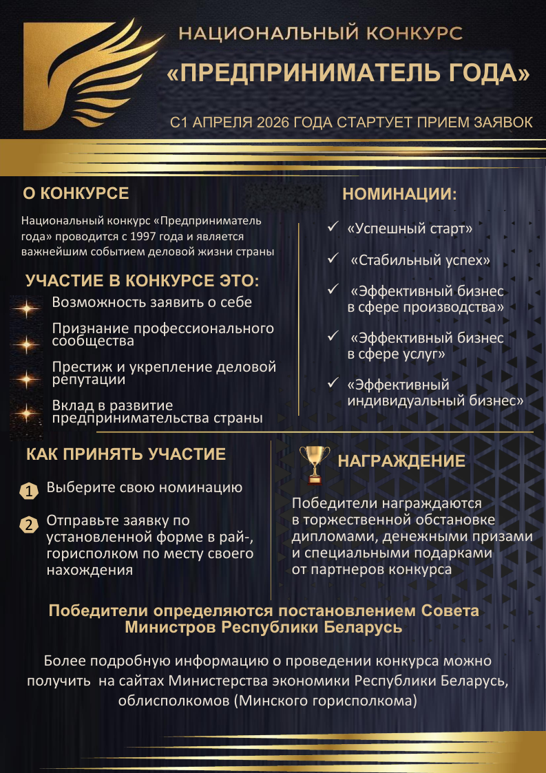 C 1 апреля 2026 года стартует прием заявок на национальный конкурс "Предприниматель года"